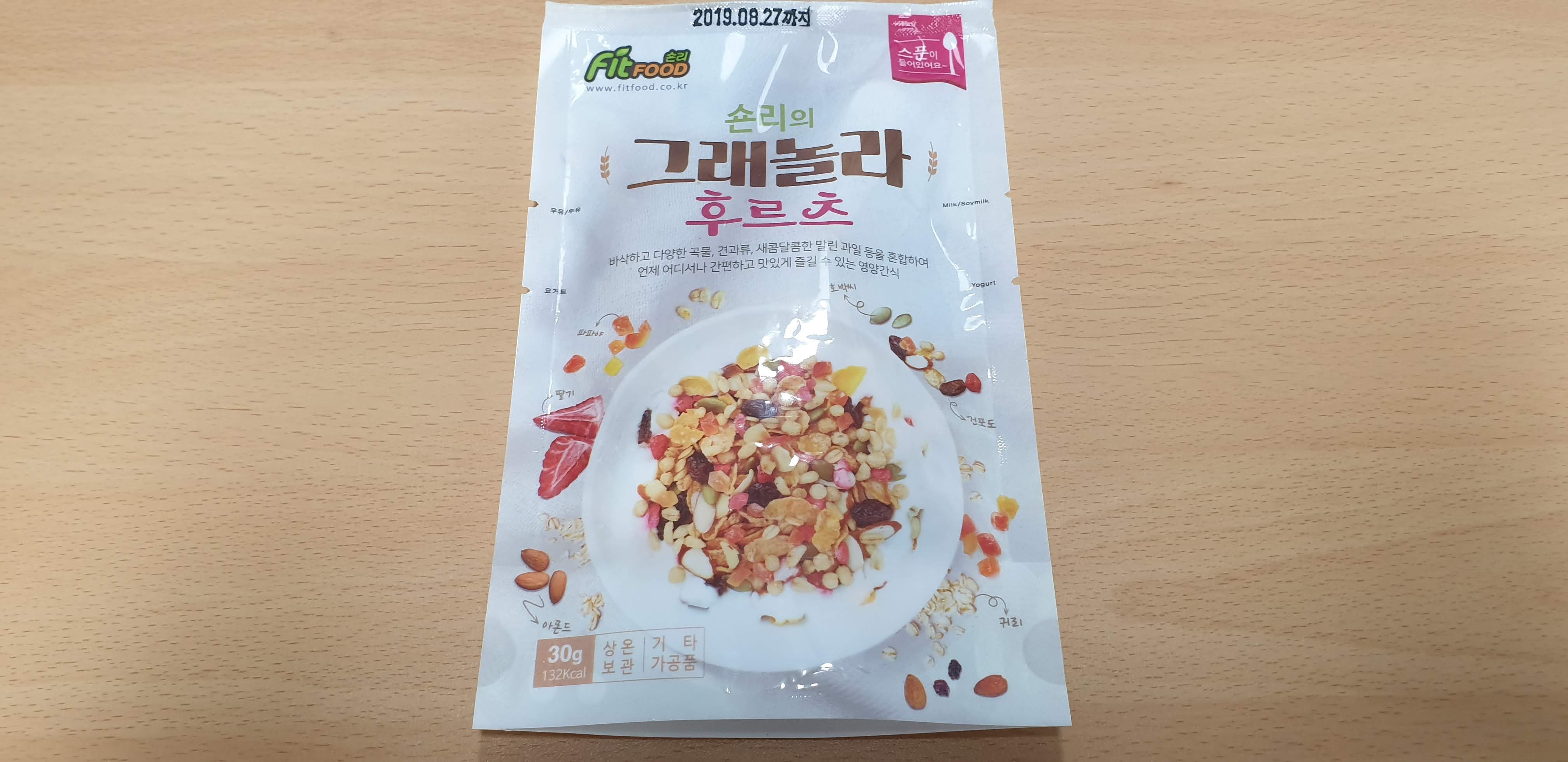 그래놀라 입니다. 안에는 과일과 곡물이 적절히 섞여서 들어있습니다.