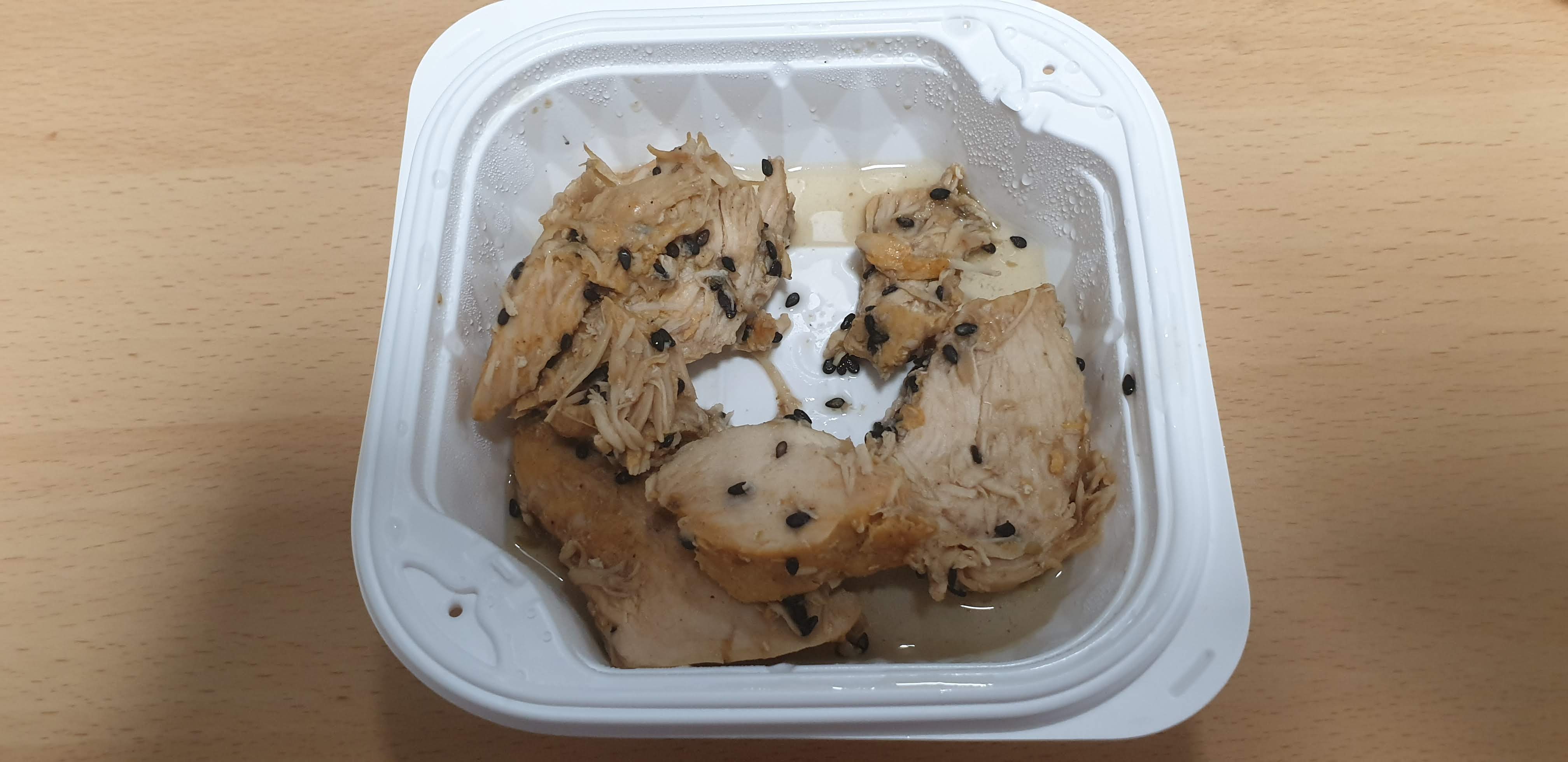 닭가슴살에 양념이 잘 베어 있어서 제법 맛납니다.
