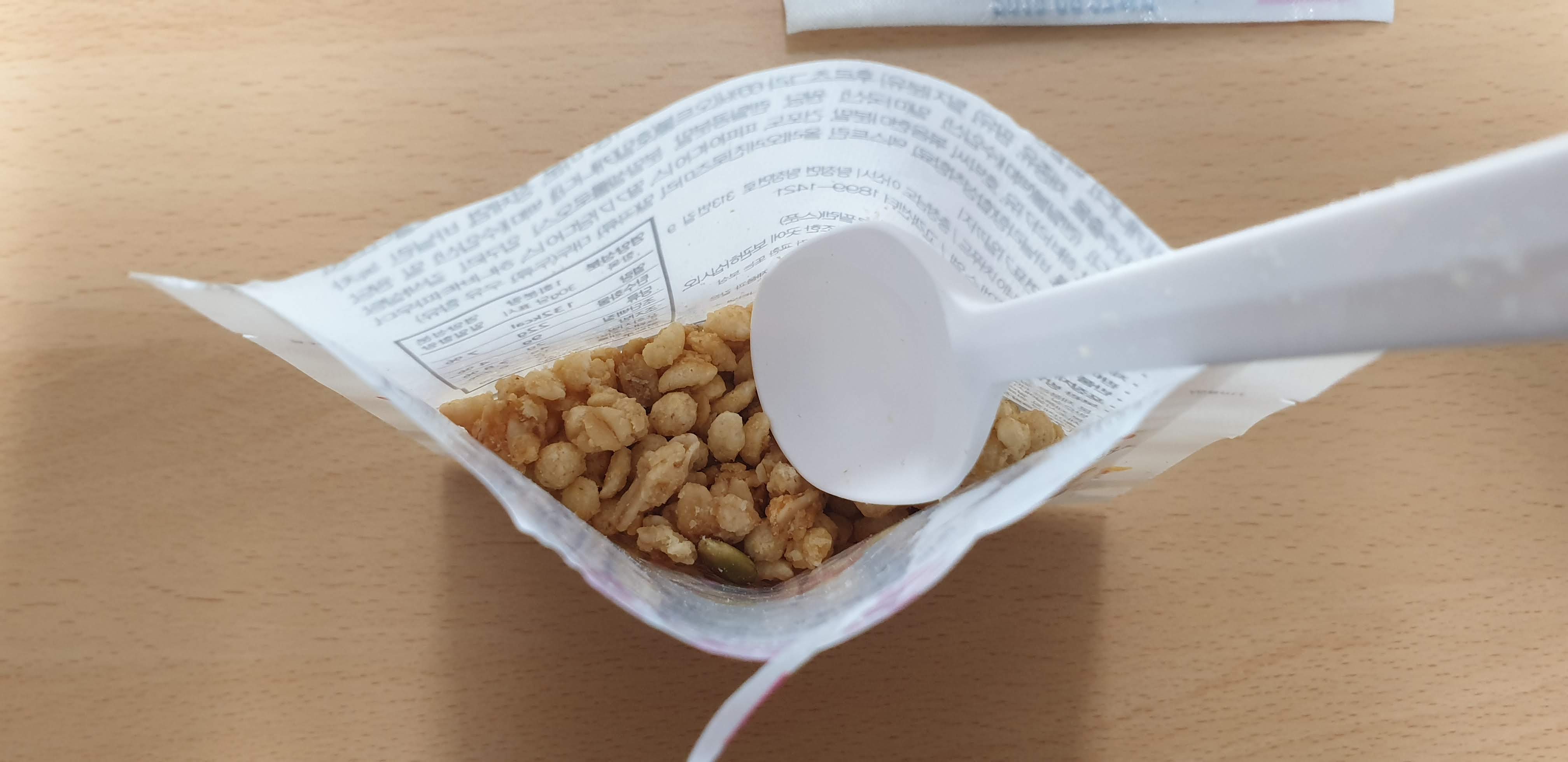 우유에 말아 먹으면, 단맛이 싹 사라집니다. 요거트에 먹어도 꽤 괜찮네요.