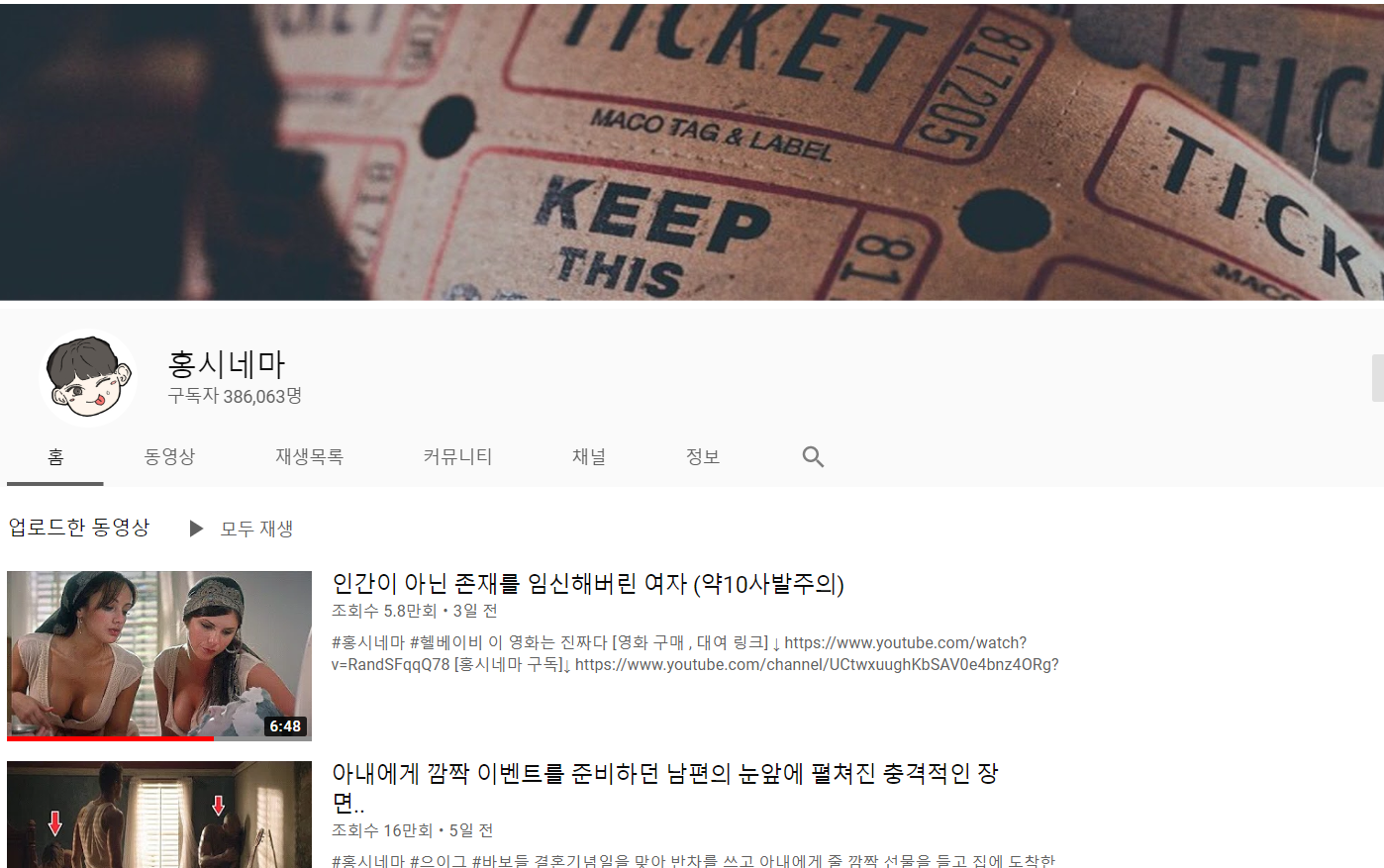 영화리뷰를 종류별(전쟁영화, 병맛, 해커, 분노유발등)으로 재생목록을 만들어 놓아서 취향저격도 가능합니다.