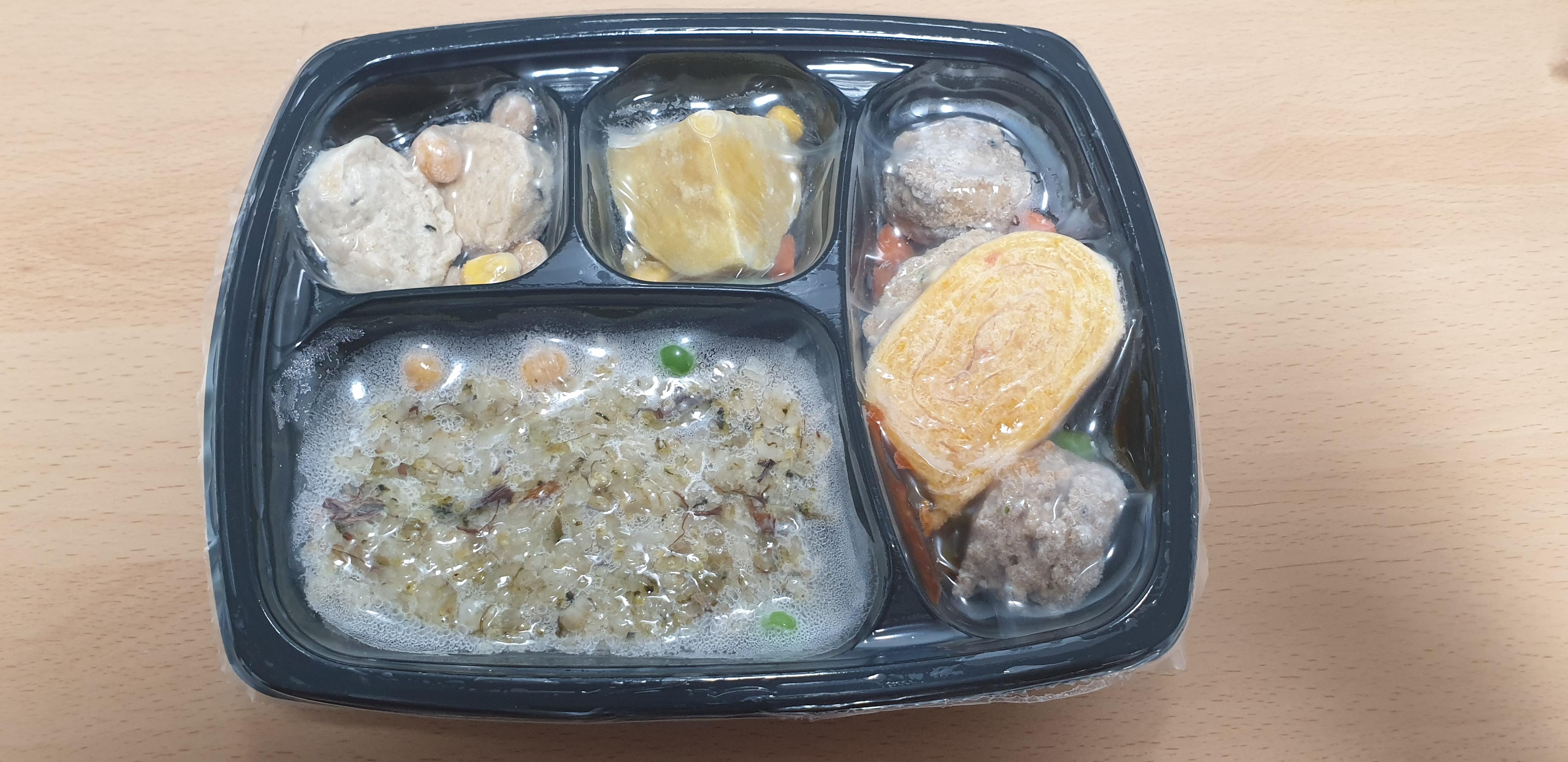 - 닭가슴살 동그랑 땡인데 짭쪼름하니 맛있습니다. 노란콩은 병아리 콩일까요? 맛나네요. -고구마는 별 특이할건 없네요. 바닥에 깔린 콩, 야채들은 간이 안되어서 담백합니다. -계란말이는 식감이 살짝 단단한데, 얇아서 저항감있지는 않습니다. 왼쪽의 스테이크는 2종류가 있는데, 동그랑땡 스타일 2개, 마름모꼴 1개가 있습니다.
